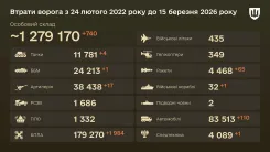 Бойові втрати ворога на 15 березня 2026 року